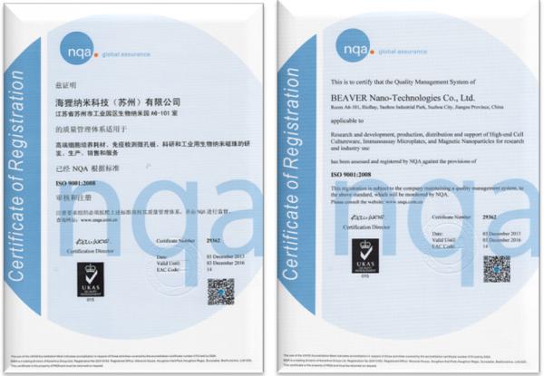 ISO9001質(zhì)量管理標(biāo)準(zhǔn)是迄今為止世界上使用最廣泛、最成熟的質(zhì)量管理方法;NQA是一家權(quán)威的跨國認(rèn)證機構(gòu),使用英國國家質(zhì)量保證有限公司的認(rèn)證資源,頒發(fā)經(jīng)UKAS認(rèn)可的管理體系認(rèn)證證書。海貍公司作為一家面向國際的生物納米高科技企業(yè),成立伊始就將質(zhì)量視為企業(yè)的生命,從產(chǎn)品設(shè)計開發(fā)、生產(chǎn)、檢驗、售前及售后支持等所有環(huán)節(jié)均嚴(yán)格按照ISO9001質(zhì)量管理標(biāo)準(zhǔn)進行全方位、規(guī)范化的管理和控制。海貍采用國際通行的質(zhì)量管理模式對公司實施管理,并通過了國際權(quán)威機構(gòu)NQA的審核認(rèn)證,是對海貍質(zhì)量管理體系的最好的肯定;這將對進一步提高公司的質(zhì)量管理水平,推動更好更快的發(fā)展奠定堅實的基礎(chǔ)。海貍將繼續(xù)以顧客為關(guān)注焦點,持續(xù)改進和提升公司的質(zhì)量管理水平,以最好的產(chǎn)品和服務(wù)迎接市場的檢驗和挑戰(zhàn)。