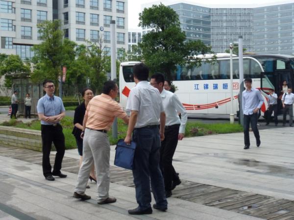 圖1. 市人力資源和社會(huì)保障局、園區(qū)科技發(fā)展局、組織人事局、科技招商中心、中小企業(yè)服務(wù)中心有關(guān)負(fù)責(zé)人陪同美國麻省理工學(xué)院代表團(tuán)一行到達(dá)海貍