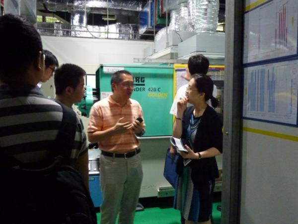圖3. 任輝博士帶領(lǐng)來賓參觀生產(chǎn)區(qū)并介紹公司產(chǎn)品