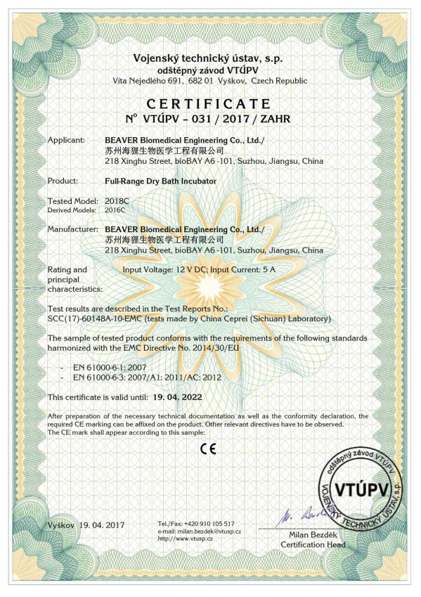 熱烈祝賀蘇州海貍生物醫(yī)學(xué)工程有限公司自主研發(fā)生產(chǎn)的全溫金屬浴產(chǎn)品(2016H、2016C)順利通過(guò)CE、FCC認(rèn)證。